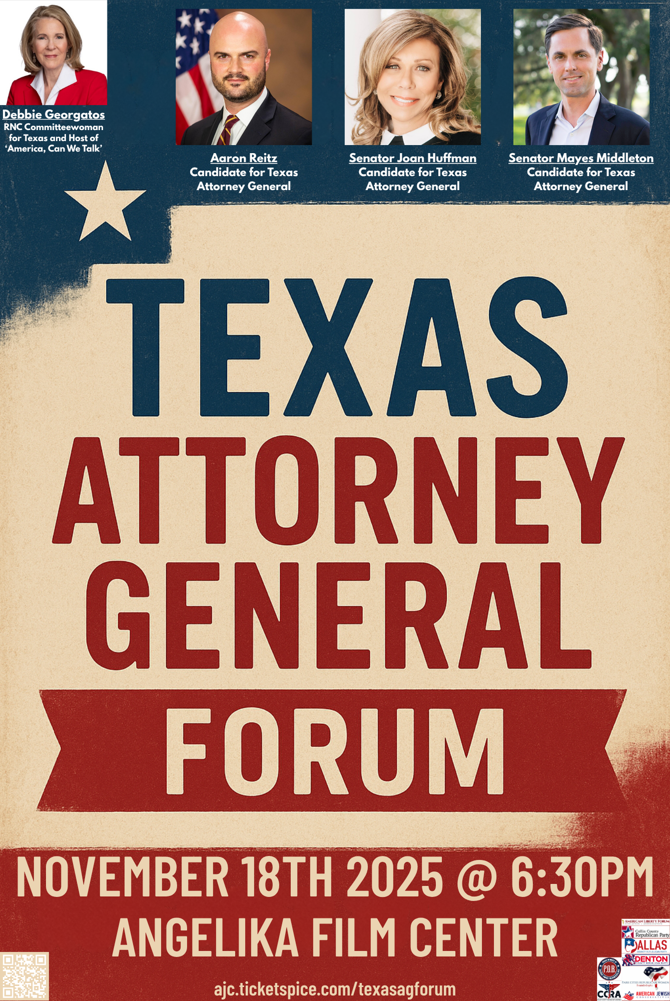 Join RNC Committeewoman Debbie Georgatos, host of America, Can We Talk?, as she moderates a dynamic conversation with the top contenders for Texas Attorney General: