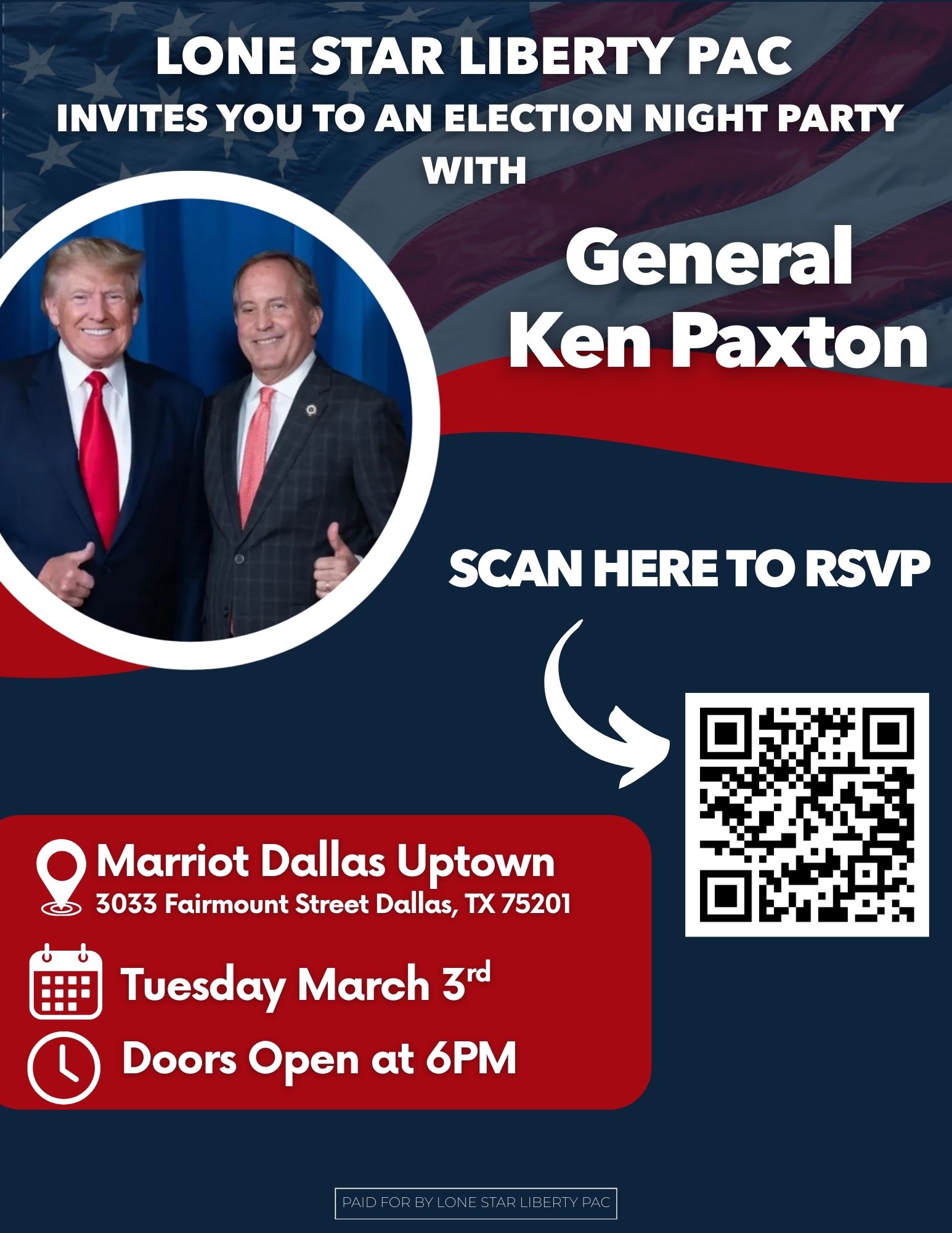 Lone Star Liberty PAC is hosting Ken Paxton on March 3rd for an election night celebration at the Marriott Uptown Dallas. Come join like minded MAGA Republicans to watch primary […]