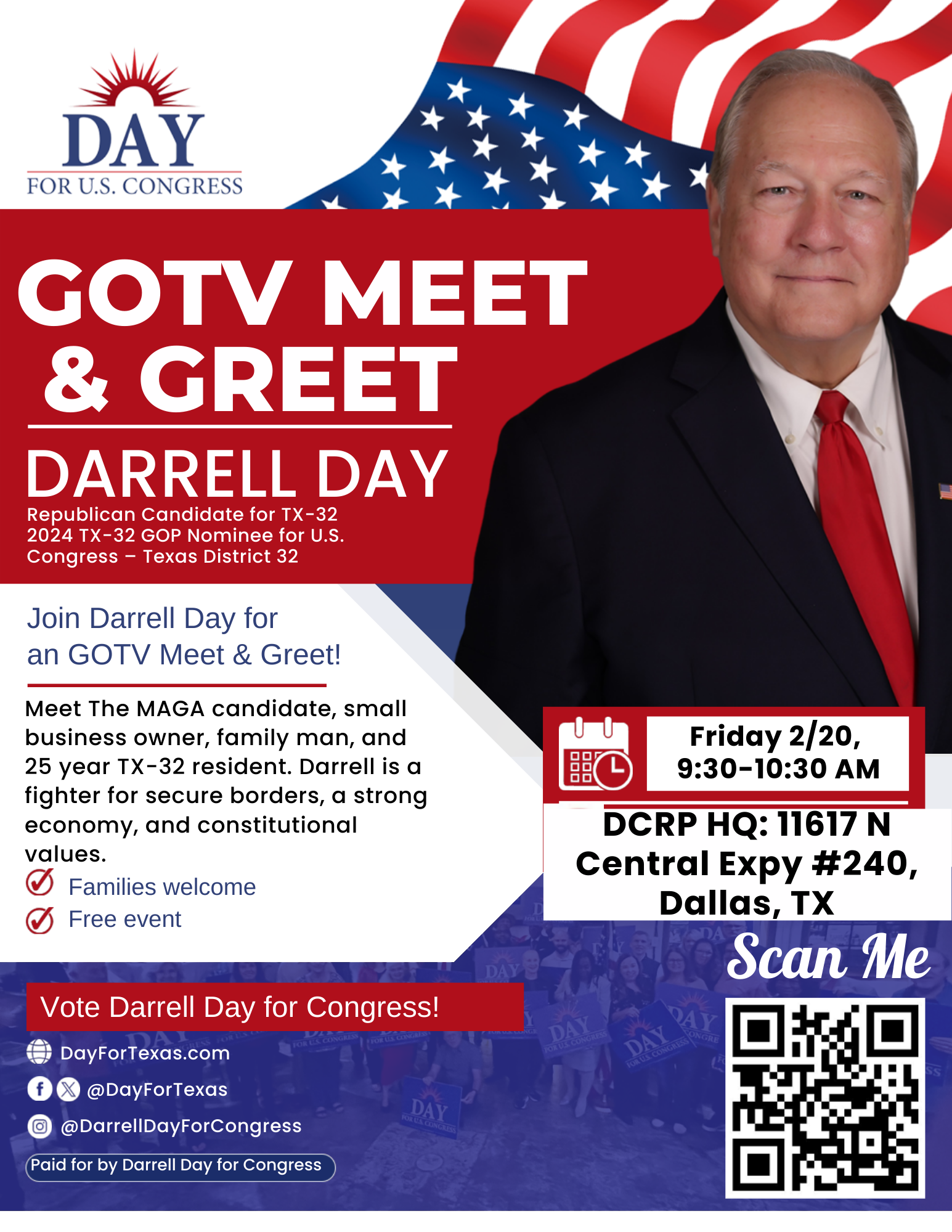 Dallas County Republican Party allows local candidates to share campaign events on our calendar and allows candidates to host meet & greets at our headquarters. Not an endorsement.