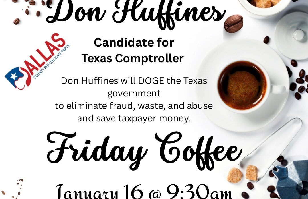 December 29, 2025 Coffee with Don Huffines Meet & Greet with Don Huffines, candidate for Texas Comptroller